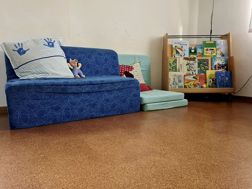 Es gibt 3 Gruppenräume, einen Mehrzweckraum, eine Küche, in der die Eltern täglich ein frisches, gesundes Mittagsmenü zubereiten sowie eine Teeküche im Obergeschoß.